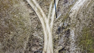 Cross between two dirt roads in the open countryside